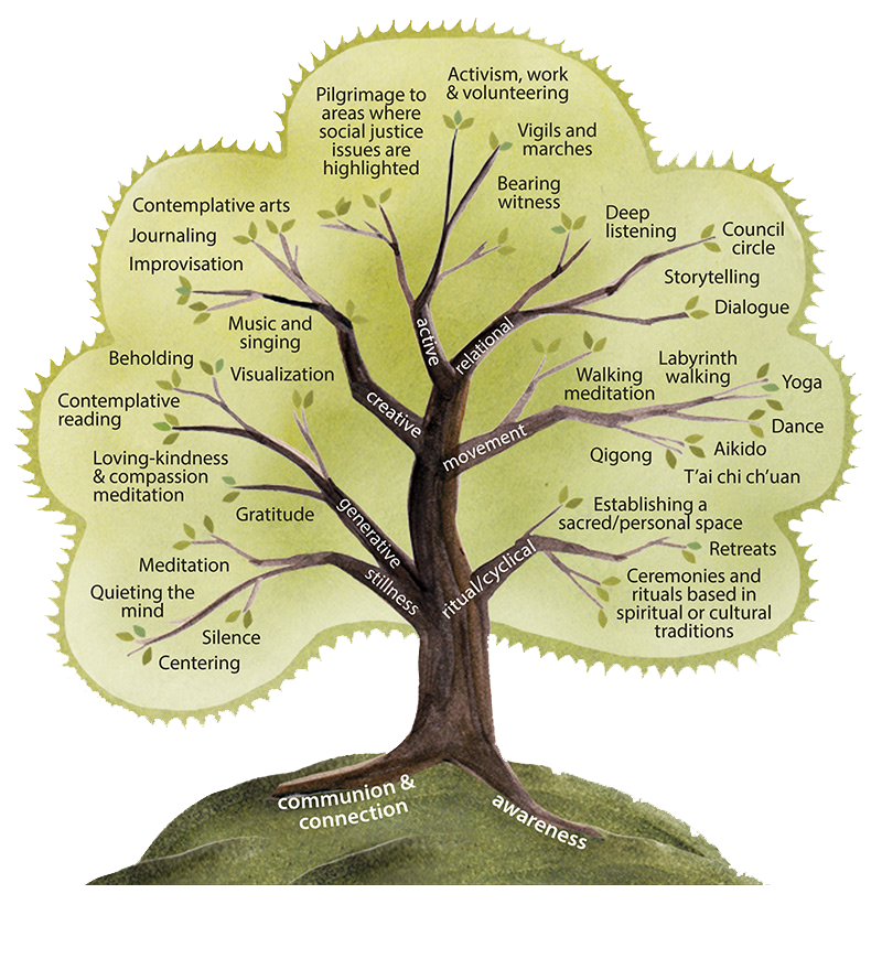 Siguiendo la definición utilizada por “The Center for Contemplative Mind in Society”, «Las prácticas contemplativas son muy variadas, adoptan diversas formas y provienen de diversas tradiciones de todo el mundo.»